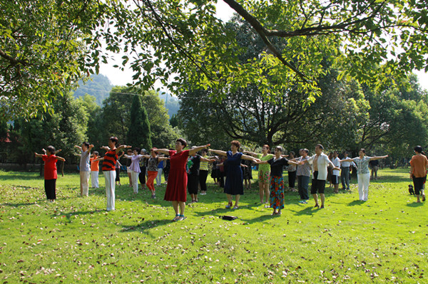 此次活動(dòng)共有120多名體協(xié)會(huì)員參加,大家都想借此機(jī)會(huì)和大自然來個(gè)親密接觸,體協(xié)委員利用休息時(shí)間為大家采購了豐富美味的食物。利用新世紀(jì)綠草地依山伴水的地理資源優(yōu)勢,在秋日和煦的陽光下,在風(fēng)景秀麗的南明湖邊,我們老年人在綠草地上展現(xiàn)了 “年輕人”舞步,跳著佳木斯健身操動(dòng)作,擺動(dòng)雙臂,邁開雙腳,走出健康,走出幸福。當(dāng)走進(jìn)餐廳看見桌子上擺好的餃子皮和餃子餡,老同志們便紛紛摩拳擦掌,躍躍欲試。他們各自分工后便熱火朝天的忙起來,現(xiàn)場笑聲不斷。