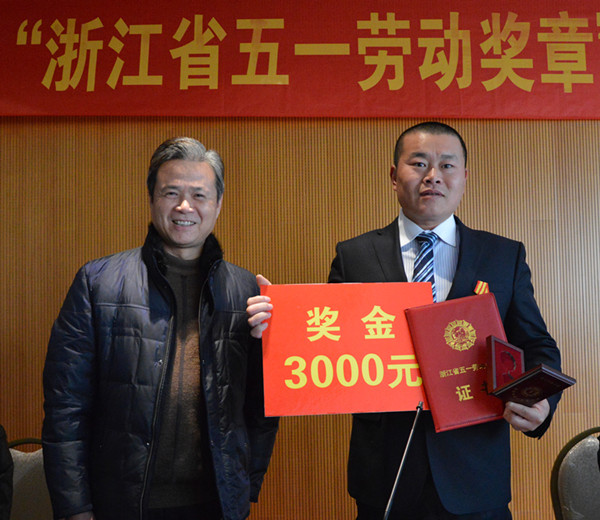 授予章雙林“浙江省五一勞動獎?wù)隆?/p>