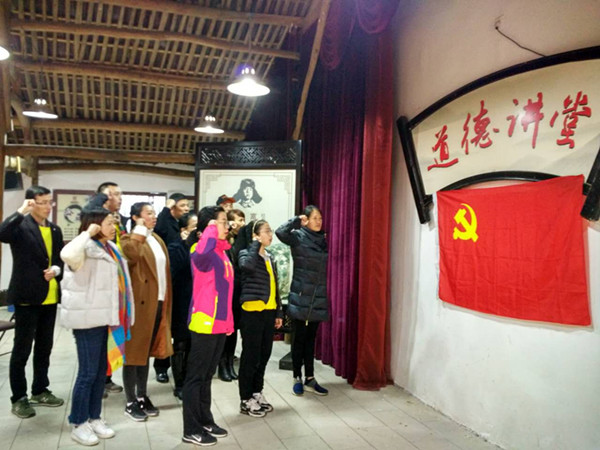 在卻金館導(dǎo)游朱勇華為我們講了“何文淵做知府”的廉潔故事 , 全體黨員向黨旗莊嚴(yán)地舉宣誓,再一次重溫入黨誓詞,黨員進(jìn)行2016年度下半年先鋒考評表。