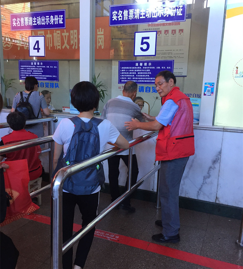為了更好的推進(jìn)創(chuàng)全國(guó)文明城市的工作,加大對(duì)不文明現(xiàn)象的勸導(dǎo),從7月17日開始,老年大學(xué)的“紅馬夾”志愿者開始在東站志愿服務(wù),他們將對(duì)在車站內(nèi)發(fā)生的不遵守一米線排隊(duì)秩序、隨地亂扔垃圾、隨地吐痰、躺在座椅上睡覺等所有不文明現(xiàn)象進(jìn)行勸導(dǎo)。