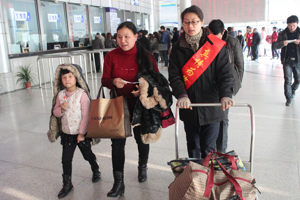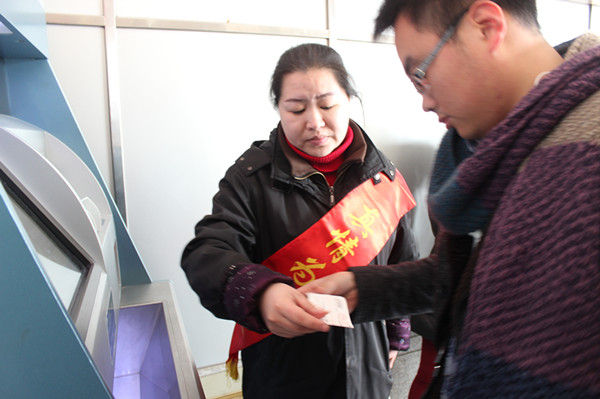 隨著2月4日“青春志愿行,溫暖回家路”2015年志愿者服務春運“暖冬行動”的啟動,2月5日,客運西站黨員志愿者服務隊和“流動之家”志愿者服務隊也正式拉開志愿者服務春運“暖冬行動”的序幕。志愿者們將在整個春運期間,在售票廳、進站口、服務臺等位置,為旅客提供咨詢、引導、扶老攜幼,自助售票導購等服務。