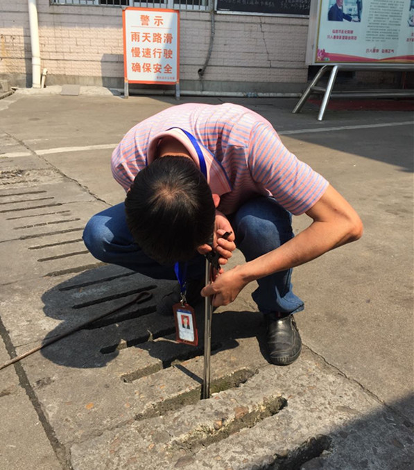 江經(jīng)理蹲下身子,在大媽掉落身份證的地方仔細地查看,由于陰溝離地面有80公分左右,而且光線較暗,而當天的溫度高達32度,陽光非常強烈、刺眼,從無比強烈的光線下往黑暗處看,無疑是加大了尋找身份證的難度。觀察、尋找了二、三分鐘,還是不見身份證的蹤影,江經(jīng)理突然靈機一動拿出手機,打開手機里的手電筒往陰溝里照,這招果然有用,沒一會兒就看到了身份證,在鎖定了身份證的方位后,江經(jīng)理打算把水泥板撬開,可是試了試后就決定放棄了,水泥板實在太重了。江經(jīng)理又找來一把鉗子和一根鋼筋,可是水泥板上的縫隙實在太小剛夠鉗子伸進去,狹小的縫隙令鉗子的操作空間受到了很大的限制,身份證好幾次被夾起,準備往上提時又滑落了下去。20分鐘過去了,太陽底下的江經(jīng)理已經(jīng)是滿頭大汗。期間有路過的駕駛員勸江經(jīng)理不要撿了,讓旅客自己再去補辦一張就是了??墒墙?jīng)理搖搖頭,他還是常說的那句話“旅客的事情無小事,我們要盡自己最大的努力,服務好每一位旅客。”