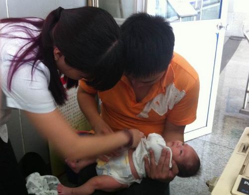 恰在這時(shí),一名年輕的“奶爸”旅客左手拉著一個(gè)行李箱,背后背著一個(gè)大包,右手還抱著一個(gè)尚在襁褓中嚶嚶哭泣的小嬰兒,滿頭大汗的來(lái)到服務(wù)臺(tái)前,小寶寶可能肚子餓了,一直在哭泣,小寶寶的媽媽又沒有隨行,只有爸爸一個(gè)人對(duì)付小家伙,實(shí)在是沒轍了,只得到服務(wù)臺(tái)求助。