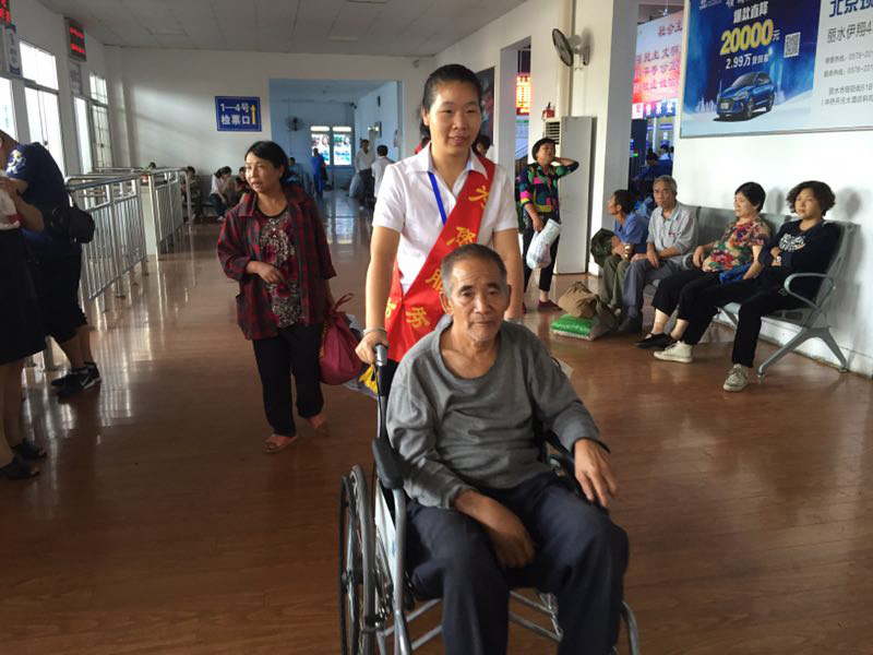 護(hù)送行動(dòng)不便老人上車(chē)